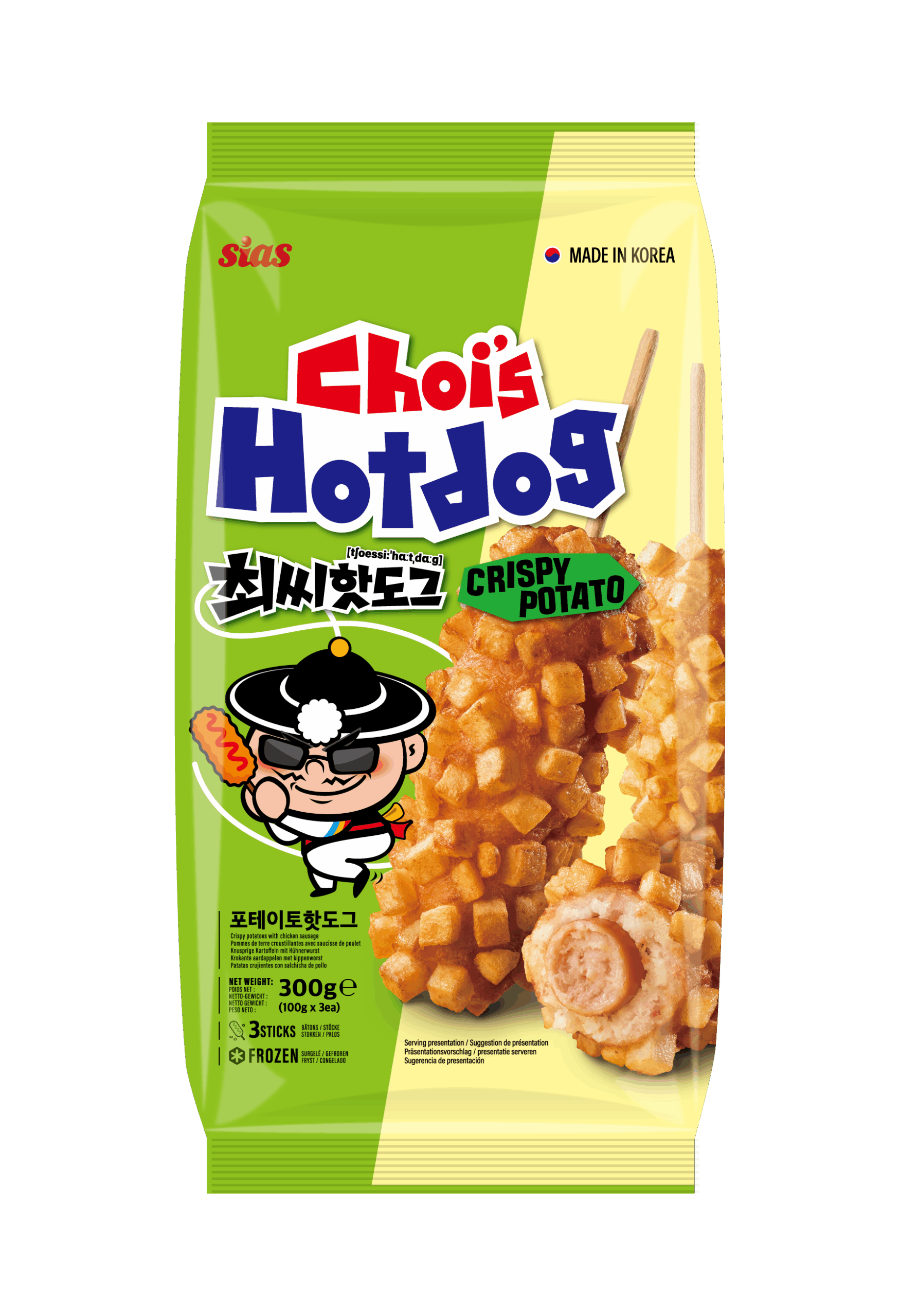 For fans of crunch, here's the Potato Corndog: a juicy chicken sausage surrounded by a golden batter, then topped with cubes of fried potato. Each bite combines melt-in-your-mouth goodness, crispness and Korean-style indulgence. A generous snack that's always a hit.