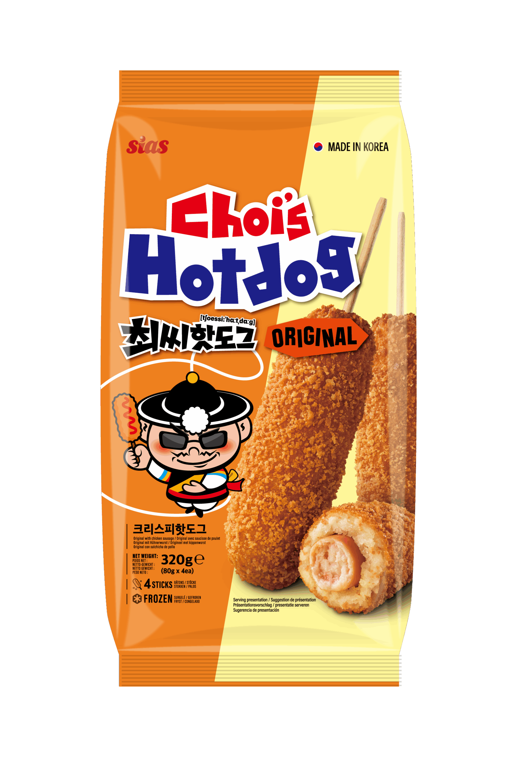 L’incontournable corndog coréen : une pâte moelleuse légèrement sucrée, une saucisse de poulet fondante et ce croustillant irrésistible à chaque bouchée. Préparé selon la recette originale, il se déguste en quelques minutes au four, à l’air fryer ou au micro-ondes. Le snack parfait entre croquant et douceur.